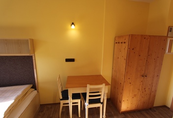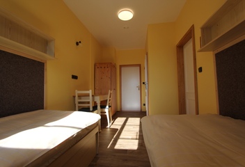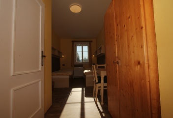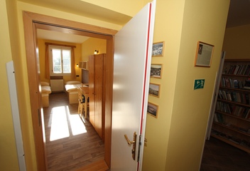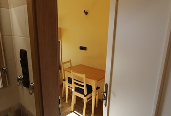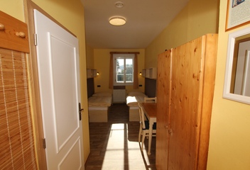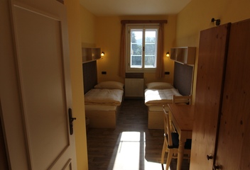 Pokoj je situován na jižní straně. V 1. patře domu je společenská místnost/jídelna sv. Vojtěcha a společná kuchyňka sv. Zdislavy pro všechny ubytované hosty.